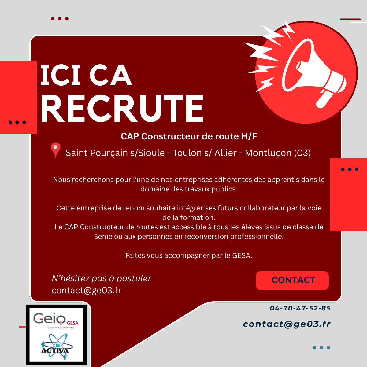 - CAP Conducteur d’engins – Toulon sur Allier (03)
