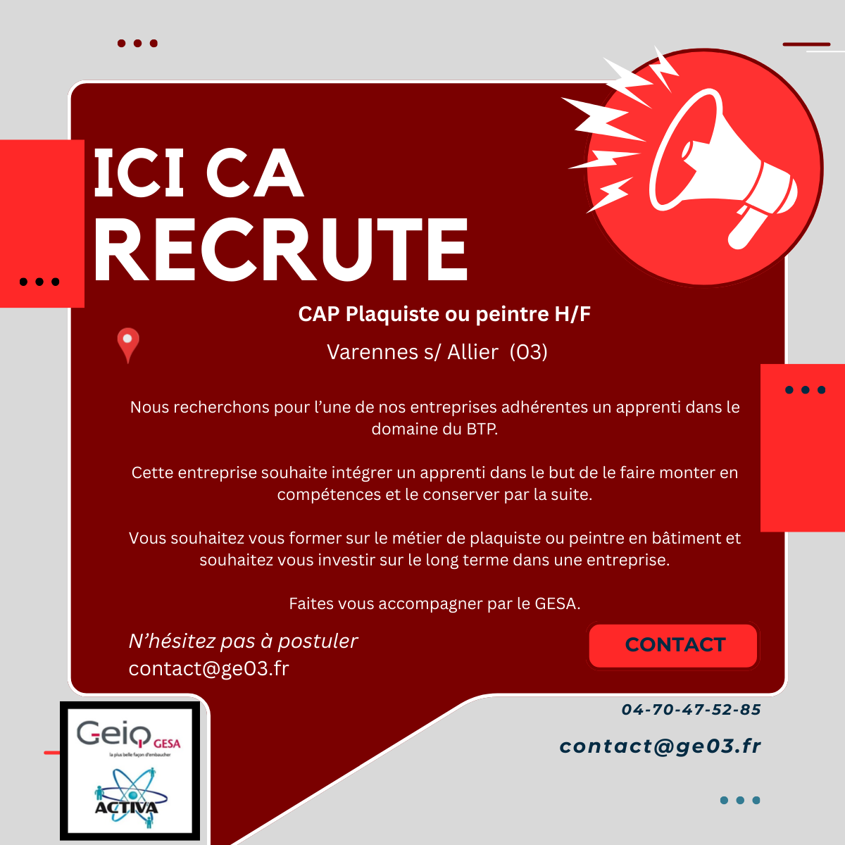 - CAP Plaquiste ou peinture – Varennes sur Allier (03)